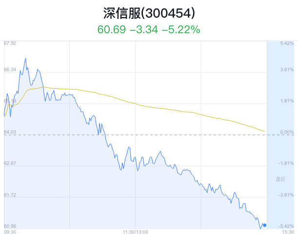 02月28日,深信服(300454)股价大幅下跌,截至14点53分,深信服下跌5.14%,报60.74元/股,成交4.16亿元,换手率2.34%。