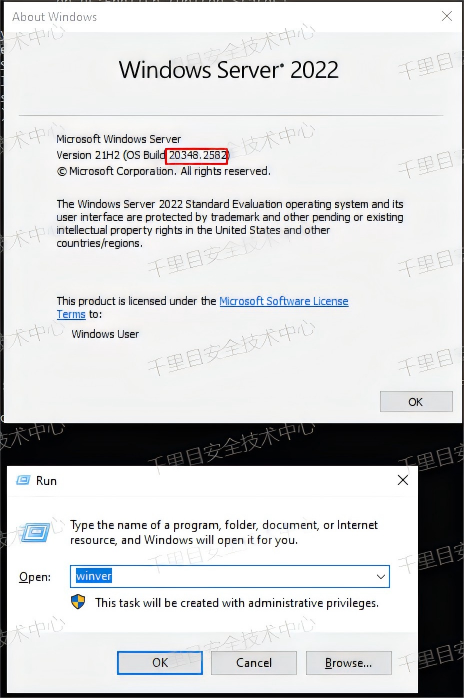 使用”Win+R”组合键调出“运行”,输入“winver”后执行确定,检查对应系统版本是否等于或高于以下表格中的版本。如果等于或高于表格中的版本,则不存在此漏洞。