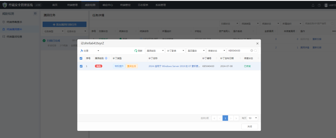 漏洞主动检测:支持对CVE-2024-38077的主动检测,可批量快速检出业务场景中是否存在漏洞风险,相关产品如下: