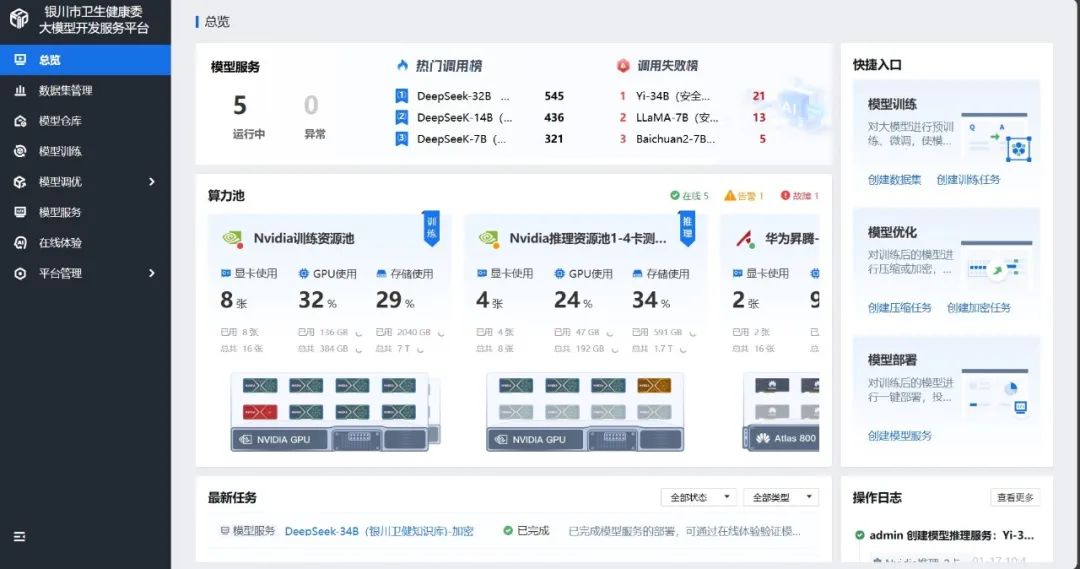 深信服与银川市卫健委的合作聚焦支撑型创新应用平台建设,依托深信服在算力调度、模型开发等领域的技术优势,结合银川市卫健委的医疗场景资源,打造了西部首个地市级卫生健康领域医学大模型开发服务及验证智能基础设施。
