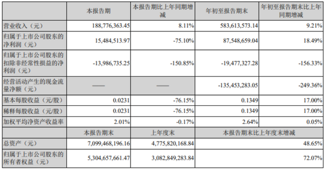 10月27日,赛微电子发布三季报称,2021年7-9月,公司实现营业收入为1.89亿元,同比增长8.11%,归属于上市公司股东的净利润为0.15亿元,同比下降75.10%。