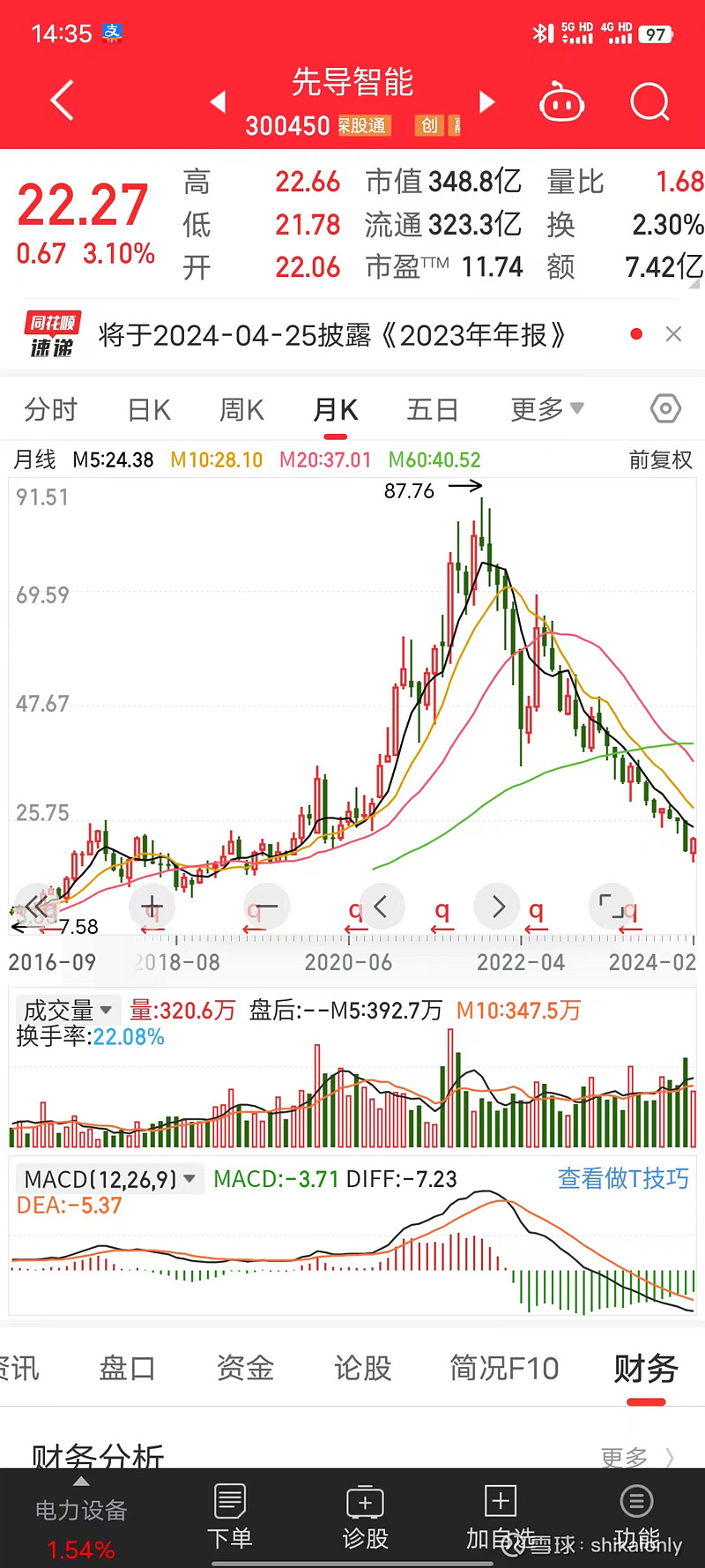 目前持有赢合科技中,我是在去年大概三四月份左右买入的赢合科技,去年年中迎来一波小行情后选择卖出了。卖出后没想到很快股价又回到了当初买入的价格,又重新买了进去,现在来看还是稍微买的贵了一些。紧接着今年年初又是一轮大范围暴跌。。。