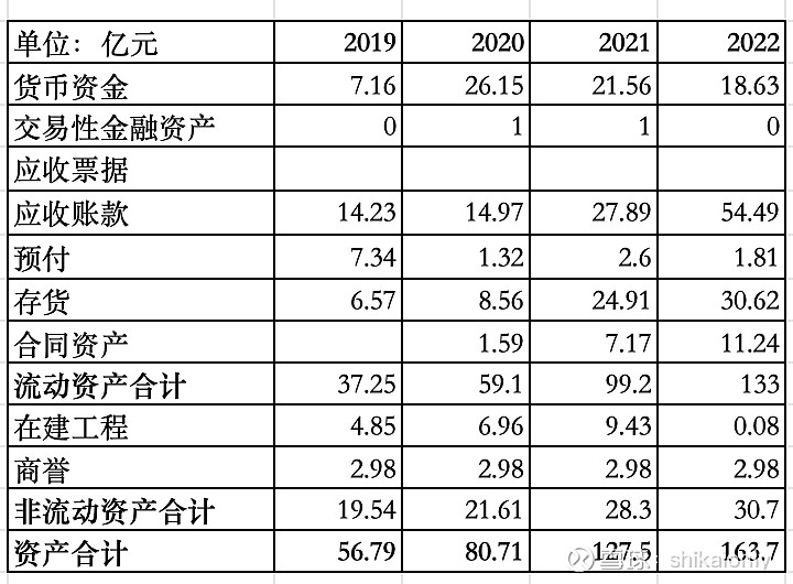 2,过去几年公司的资产总额大幅增加,从2019年末的50多亿快速来到了2022年底的160多亿,我估计2023年报出来后,资产总额能超过200亿,四年四倍!这说明了企业主营业务所处的行业,在过去几年中经历了快速的成长和扩张、公司自身的发展也非常迅猛。