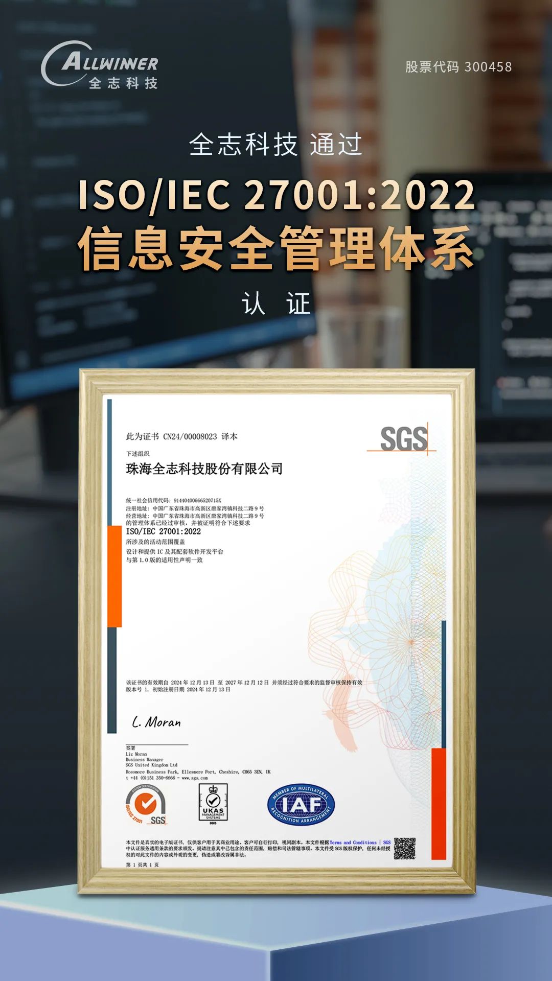全志科技通过ISO/IEC27001:2022信息安全管理体系认证