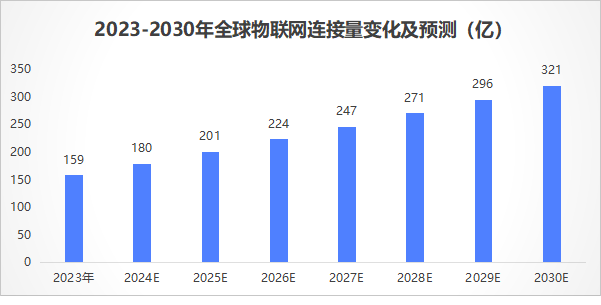 随着智能家居、5G商用技术的普及,未来将有百亿量级的终端设备可进行联网。据预测,2024-2030年,全球物联网连接数量将从180亿增至321亿,连接设备数在迅速增加,也会带动SoC芯片用量提升。
