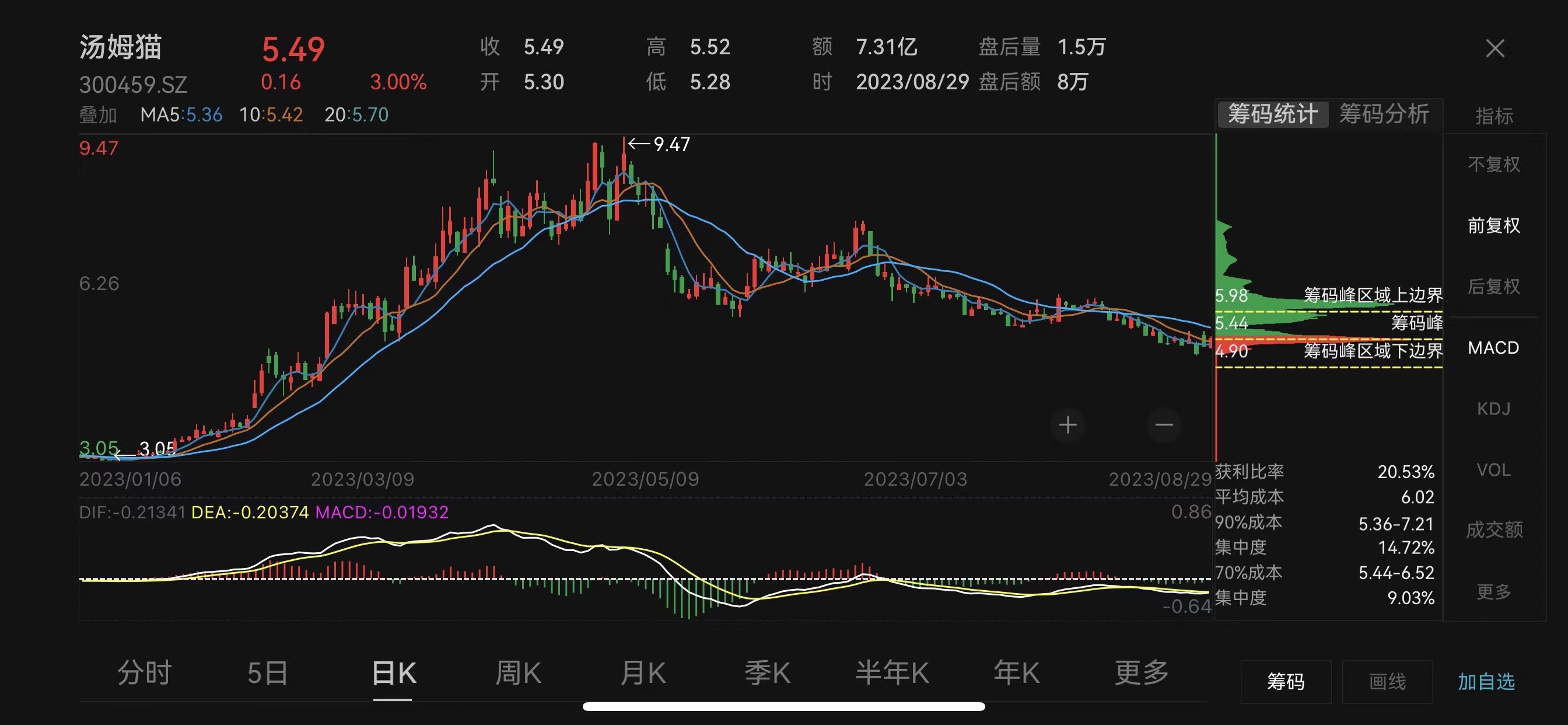 二级市场上,8月29日汤姆猫低开高走,截至收盘涨3.00%报5.49元,年内累计涨幅为74.29%。