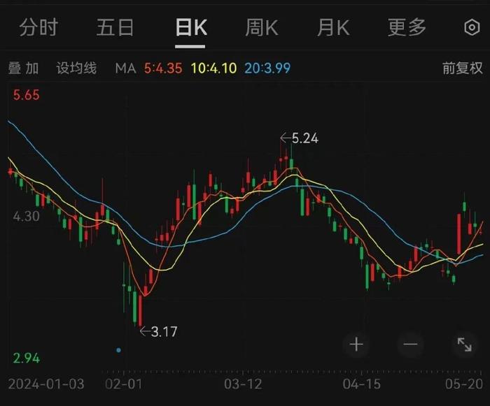 从公司在二级市场上的表现来看,今年初至5月17日,该公司股价下跌9.92%,期间最高触达5.24元/股,最低触及3.17元/股,最大振幅约为40%,当日报收4.28元/股,总市值为150亿元。