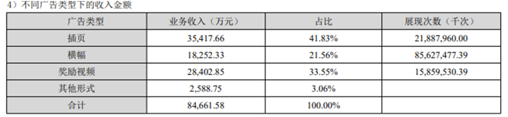 从广告类型来看,2024年公司来自插页、横幅、奖励视频三大广告类型的收入全线下滑,对应收入分别为3.54亿元、1.83亿元、2.84亿元,同比下滑幅度分别为15%、18%、24%。