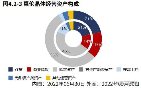从2022年6月30日的经营资产结构来看,固定资产占比55%,存货占比21%,商业债权占比15%。