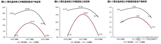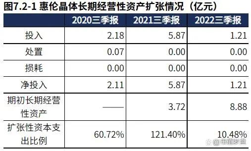 产能快速收缩。 2022三季报惠伦晶体产能投入1.21亿元,处置0.81万元,折旧摊销损耗0.00元,新增净投入1.21亿元,与期初经营性资产规模相比,扩张性资本支出比例10.48%。