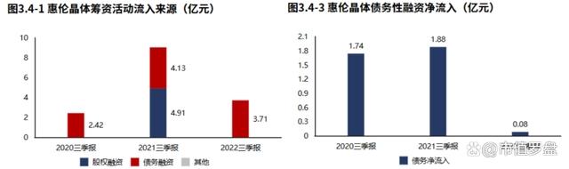 惠伦晶体2022三季报筹资活动现金流入3.71亿元,全部来自债券流入。较2021三季报减少5.34亿元,增速-59.02%,筹资活动现金流入快速减少。惠伦晶体2022三季报债务净流入757.83万元,较2021三季报减少1.80亿元,公司持续有新增贷款,且新增贷款规模快速减少。