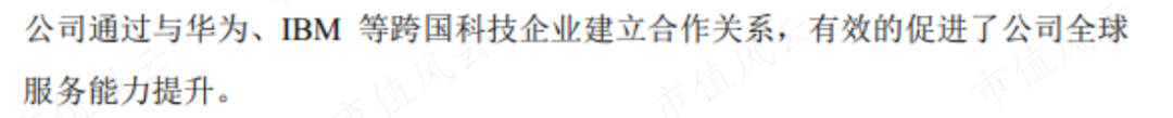 与IBM、华为两大巨头的合作扮演什么角色、结果具体如何,我们不得而知,只知道它“提高了公司的全球服务能力”。