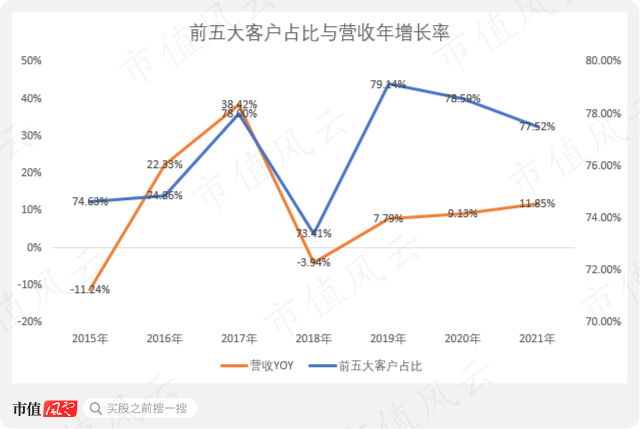 加大销售开支还是有一定的效果的,可以看到2018年以后虽然前五大客户占比略有下滑,但营收增长依然保持稳定。