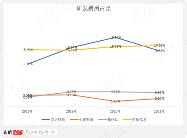 风云君在开头提到四方精创的销售开支在业内处于较低水平,但在2018年以后销售开支就有了明显上涨。