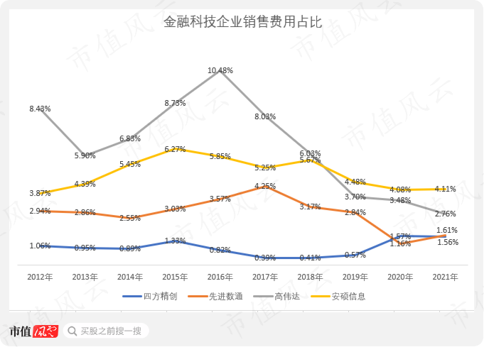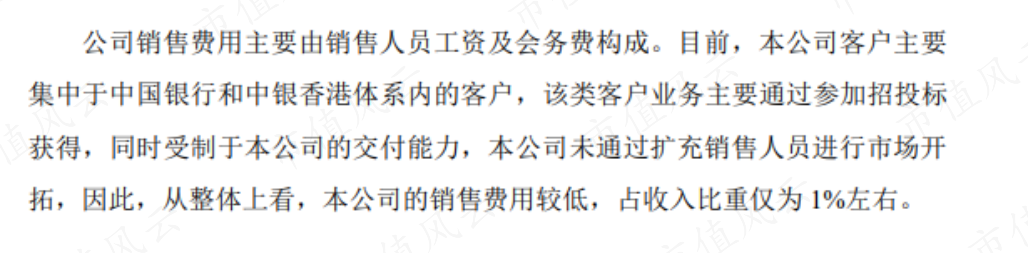 尽管客户集中度较高导致存在主要客户需求下降的风险,但抱紧稳定的“大腿”也使四方精创得以专注维护存量客户,省下了不少销售费用。