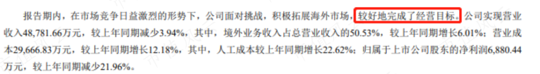 自2015年上市以来,除了上市当年以外,仅2018年的营收增长率为负,为-3.9%。然而2018年年报中却说“较好的完成了经营目标”。