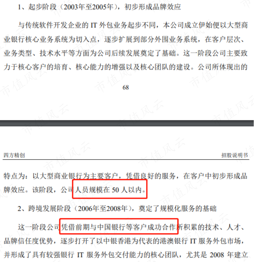 值得一提的是,四方精创的首要客户中国银行,并不是其在发展起来以后才获得的,而是在公司不满50人的初期就与中国银行达成合作了。