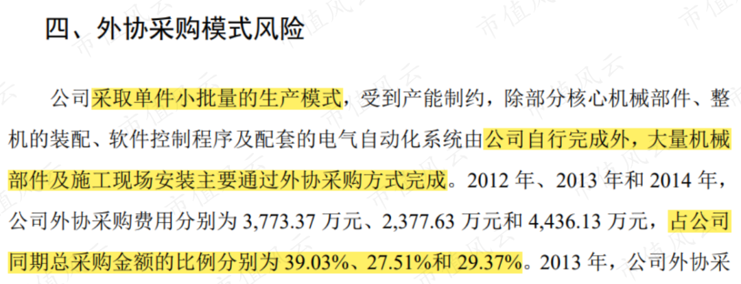 因此,公司受产能制约,大量机械部件及现场安装需要外协采购完成。