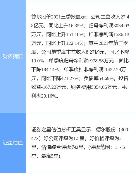 德尔股份公告,预计2021年度归属于上市公司股东的净利润2000万元–3000万元,上年同期为亏损42280.53万元;扣除非经常性损益后的净利润1200万元–2200万元,上年同期为亏损43608.29万元。