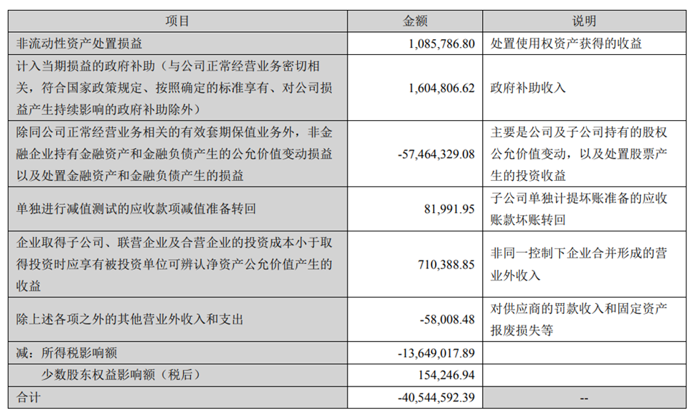 年报显示,2024年,在香农芯创的非经常性损益中,香农芯创及子公司持有的股权公允价值变动,以及处置股票产生的投资收益为-5746.43万元。