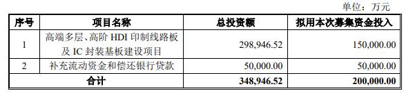 本次向特定对象发行股票拟募集资金总额不超过200000.00万元,扣除发行费用后的募集资金净额拟投资于高端多层、高阶HDI印制线路板及IC封装基板建设项目、补充流动资金和偿还银行贷款。