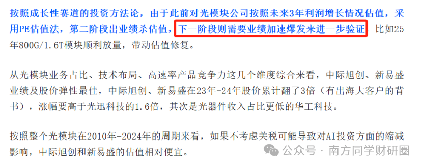 但无论是光模块还是PCB,相关公司股价已经自启动之日起,涨幅高达8倍。按照之前笔者研究光模块的观点“下一阶段需要业绩加速爆发来进一步验证”。
