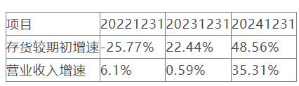 胜宏科技存货增速高于营业收入增速。2024年显示,公司存货较期初增长48.56%,营业收入同比增长35.31%,存货增速高于营业收入增速。