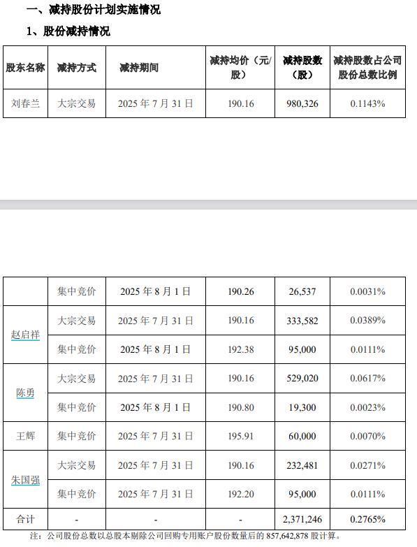 4日晚间,胜宏科技公告,公司董事刘春兰、董事兼总裁赵启祥、董事兼副总裁陈勇、执行副总裁王辉、财务总监朱国强的减持计划已实施完毕。减持数量合计为237.12万股,占公司股份总数(剔除公司回购专用证券账户中股份数量)的0.2765%。