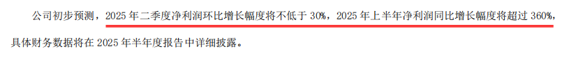 胜宏科技在一季报中提到,经初步预测,公司2025年二季度净利润环比增长幅度将不低于30%,2025年上半年净利润同比增长幅度将超过360%。
