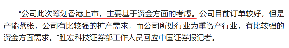 另据公司证券部工作人员透露,筹划在香港上市主要是出于资金方面的考虑。