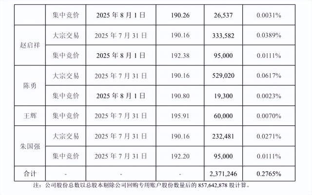 8月4日,胜宏科技发布公告显示,董事刘春兰、董事兼总裁赵启祥、董事兼副总裁陈勇、执行副总裁王辉、财务总监朱国强已完成此前披露的减持计划,合计减持237.1万股,以减持均价计算,总套现金额约8.48亿元。