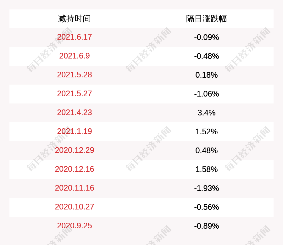 3.万孚生物上次发布减持公告是2021年06月17日,第二个交易日下跌0.09%,万孚生物近一年共发布12次减持类公告。