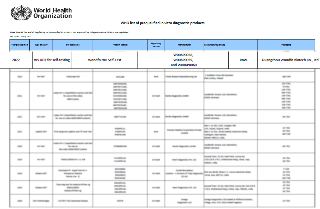 近日,万孚生物收到世界卫生组织(WHO)出具的体外诊断预认证(PQ)确认函,万孚生物艾滋自测产品已通过世界卫生组织的预认证,被世界卫生组织列入体外诊断产品推荐采购清单。