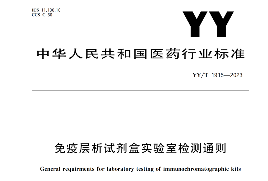 2024年3月15日起,《免疫层析试剂盒实验室检测通则》(YY/T 1915-2023)(以下简称《检测通则》)正式实施。该标准由国家药品监督管理总局提出并于2023年9月5日正式发布,由全国医用临床检验实验室和体外诊断系统标准化技术委员会(SAC/TC 136)归口管理。
