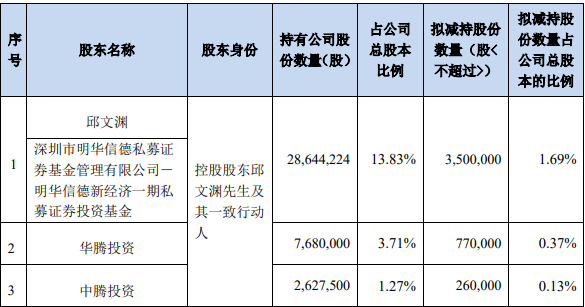 蓝海华腾8月5日公告,公司董事会于当日收到公司控股股东邱文渊及其一致行动人平潭蓝海华腾投资有限公司(以下简称“华腾投资”)、平潭蓝海中腾投资有限公司(以下简称“中腾投资”);董事徐学海、姜仲文、傅颖、时仁帅关于拟减持公司股份的告知函,上述股东拟合计减持不超998万股股份,占公司总股本的4.82%。其中,邱文渊、姜仲文先生、傅颖女士为自身资金需求;华腾投资、中腾投资为激励员工;徐学海、时仁帅需筹措资金偿还借贷款项。