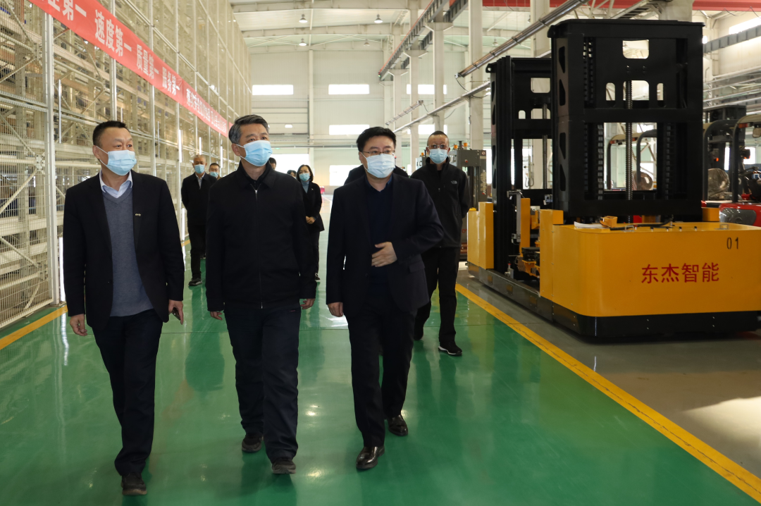 高副主任详细了解了东杰智能整体情况。公司常务副总经理朱忠义和董事会秘书张新海分别就技术创新、市场拓展、业务发展等方面做了详细汇报,并针对公司生产运营、技术研发与合作方面困难与各领导进行了深入沟通交流。
