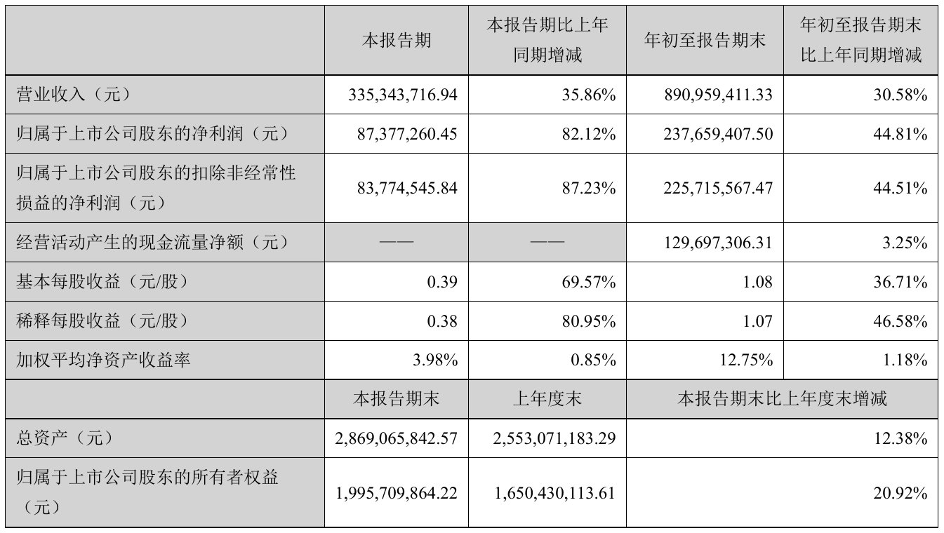 挖贝网10月19日,蓝晓科技(300487)近日发布2021年前三季度报告,报告期内营业收入890,959,411.33元,同比增加30.58%;净利237,659,407.50元,同比净利增加44.81%。