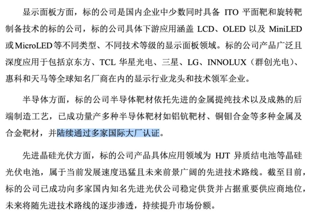 当年,优美科公司有“全球ITO旋转靶材领域市场领导者”之称,市占率超过60%,先导稀材借此实现加速进军高端ITO靶材行业。
