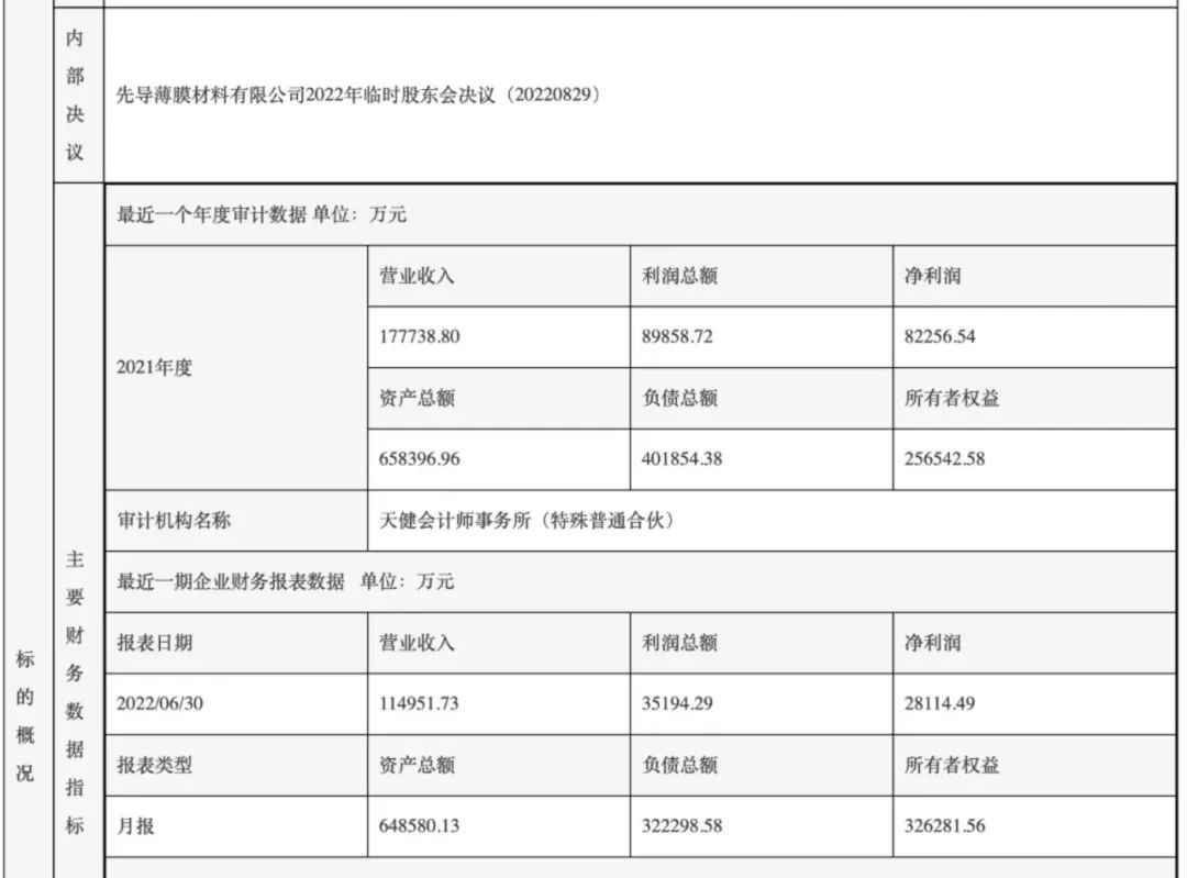 当年“国庆黄金周”过后,10月8日,江苏产权交易所挂出一则转让公告,标的是先导薄膜材料有限公司0.3132%股权。这份股权持有者是厦门国升增长股权投资合伙企业(有限合伙),其为A轮参投方之一。