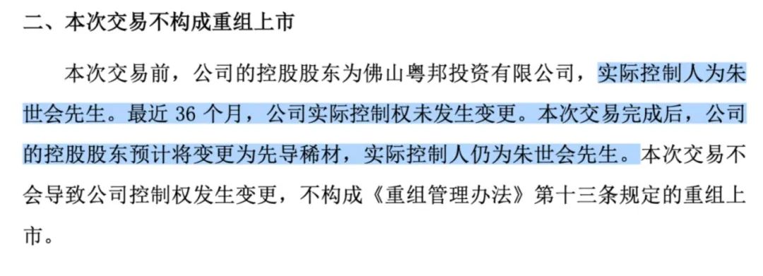 对于这次涉及关联交易的“蛇吞象”式重组,光智科技反复在公告中强调的一点是:“构成重大资产重组但不构成重组上市。”至于原因,简而言之即:光智科技的实际控制人在并购交易完成前后不变,均为“朱世会先生”。