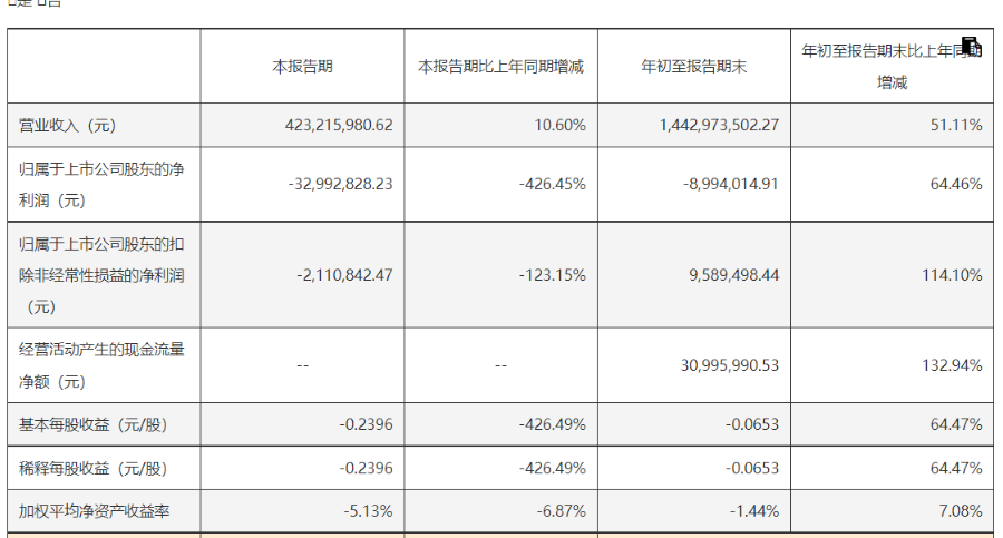 光智科技发布的2025年前三季度业绩报告显示,该公司前三季度实现营业收入为14.43亿元,同比增长51.11%;归母净利润为-899.40万元,同比增长64.46%;扣非归母净利润为958.95万元,同比增长114.10%;基本每股收益-0.07元。