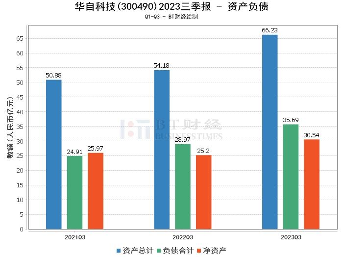 在资产负债方面,华自科技2023年三季度的总资产为66.23亿元,相比上年度末的56.56亿元增长了17.11%。负债合计为35.69亿元,相比上年度末的34.97亿元略有增加。净资产为30.54亿元,相比上年度末的21.59亿元增长了41.46%。资产负债率为53.89%,相比上年度末的61.83%有所下降。