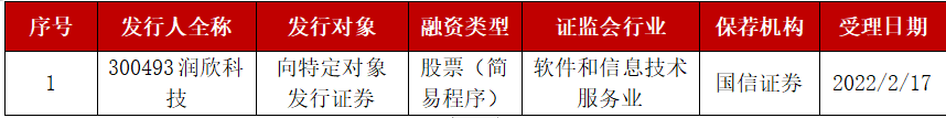 再融资:新增润欣科技获受理