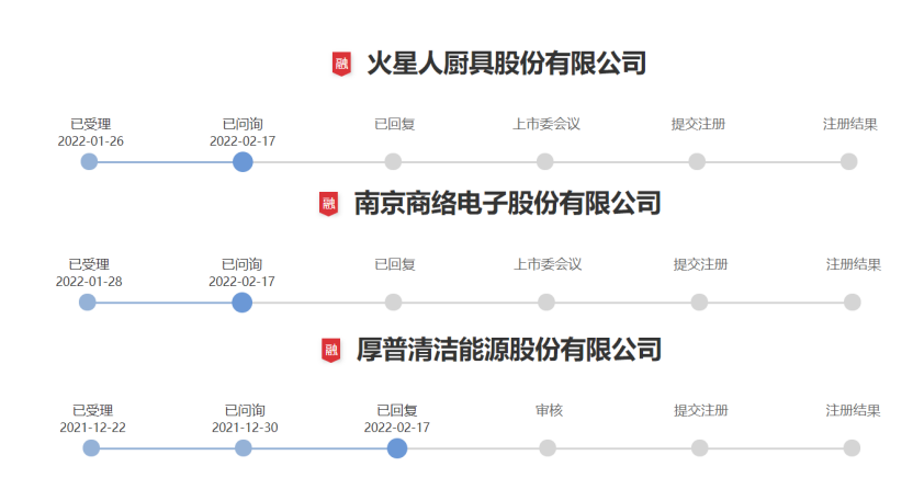 昨日至今再融资新增润欣科技1家受理企业,新增火星人等2家问询企业,新增厚普股份1家回复问询企业,无新增注册、中止及终止企业。