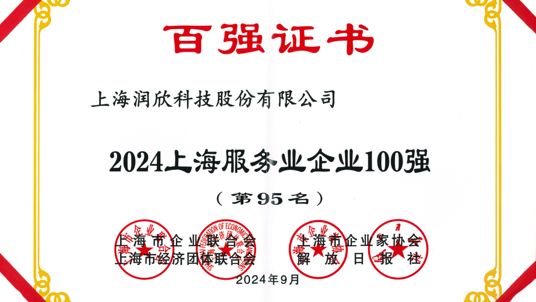 2024上海服务业企业100强(第95名);