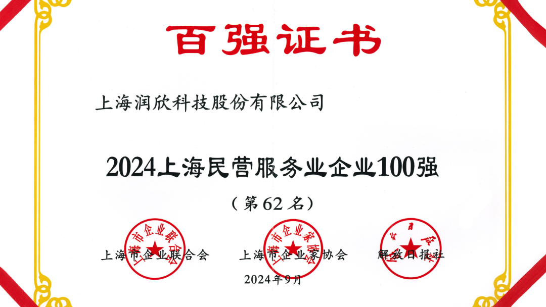 2024上海民营服务业企业100强(第62名);