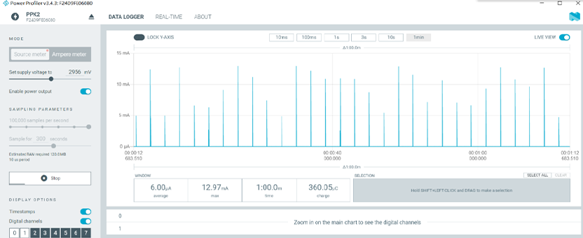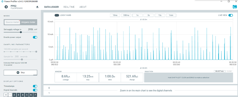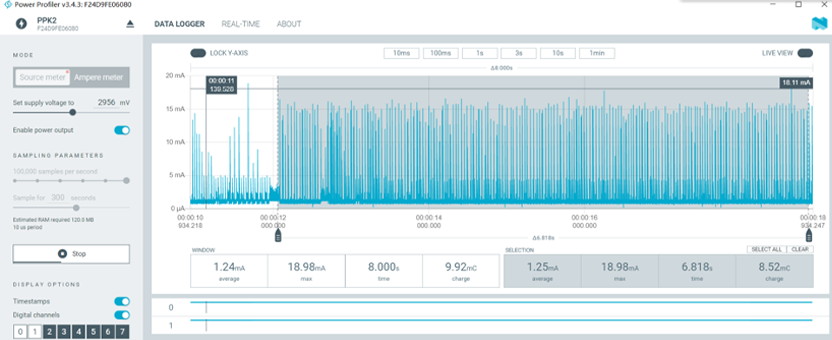 电流消耗为8.7μA,连接间隔为1秒钟,保持高效稳定的连接。