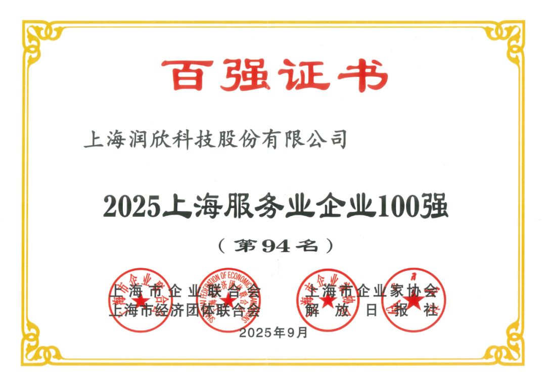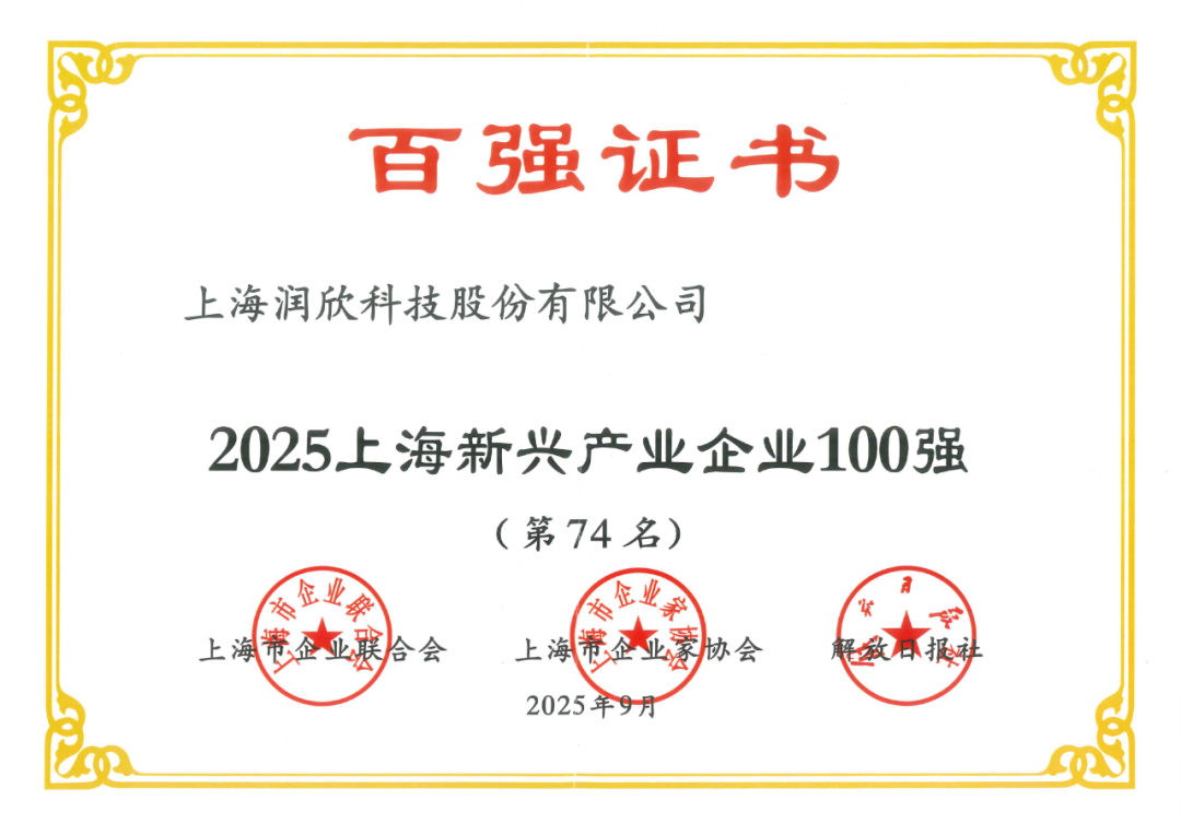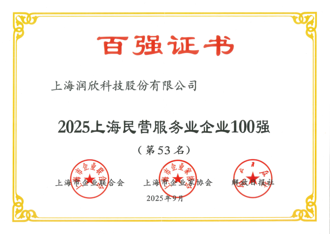 近日,2025上海百强企业新闻发布会在中国金融信息中心会议厅召开,润欣科技在本次百强评选中成功入选并荣获2025上海服务业企业100强(94名)、2025上海民营服务业企业100强(53名)、2025上海新兴产业企业100强(74名)和2025上海百强成长企业100强(52名)。