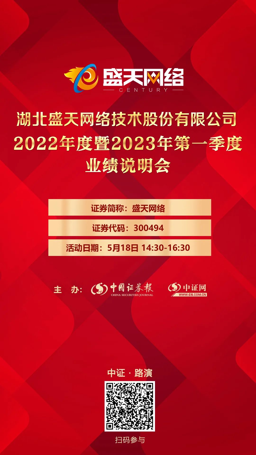 盛天网络2022年度暨2023年第一季度业绩说明会5月18日在中证网举行