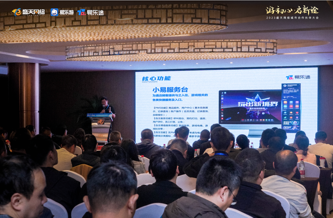 本次城市合作伙伴大会,正式发布易乐途标准版,产品研发总监李佳指出:“电竞酒店的最大痛点,是如何将其住宿属性与电竞属性打通。”易乐途标准版是盛天网络专为电竞酒店研发的数字娱乐平台,以五端互通、八大功能模块,为电竞酒店业主带去更加便捷、舒心的管理模式。